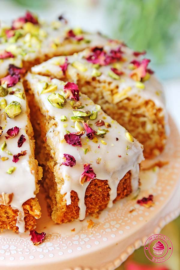 Przepis na perskie ciasto różane wypatrzyłam na stronie Nigelli Lawson – oczywiście przyciągnęło mnie zdjęcie :)